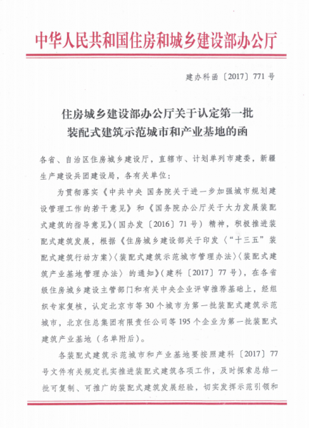 普利凱動(dòng)態(tài)當(dāng)前位置:首頁 > 新聞中心 > 普利凱動(dòng)態(tài)普利凱獲批首批國家級“裝配式建筑產(chǎn)業(yè)基地”發(fā)布時(shí)間:2017-11-14 2017年11月9日,中華人民共和國住房和城鄉(xiāng)建設(shè)部正式發(fā)文,授予寧波普利凱建筑科技有限公司第一批“裝配式建筑產(chǎn)業(yè)基地”。 “總投資3.3億元” “成立3年” “高科技企業(yè)” …… 位于寧海灣循環(huán)經(jīng)濟(jì)開發(fā)區(qū)的寧波普利凱建筑科技有限公司成立僅三年,由寧波東部新城開發(fā)投資有限公司與寧波建工股份有限公司共同出資組建。公司采用標(biāo)準(zhǔn)化設(shè)計(jì)、工廠化生產(chǎn)、裝配化施工、信息化管理和一體化實(shí)施等新型建筑工業(yè)化生產(chǎn)方式,專業(yè)從事建筑構(gòu)件設(shè)計(jì)、研發(fā)、生產(chǎn)、銷售、施工裝配和技術(shù)咨詢服務(wù)。 延伸閱讀 裝配式建筑是指通過工廠化生產(chǎn)的建筑部件,在施工現(xiàn)場通過組裝和連接而成的建筑。簡而言之,“造”房子就像“搭積木”一樣。 寧波市一貫重視裝配式建筑的發(fā)展,政策出臺(tái)時(shí)間較早,配套齊全。從2015年以來,逐步明確了裝配式建筑的發(fā)展目標(biāo)、重點(diǎn)工作、優(yōu)惠政策、保障措施等,為全市裝配式建筑發(fā)展指明了方向。同時(shí)在商品房提前預(yù)售、新墻材基金和散裝水泥資金返退、裝配式建筑項(xiàng)目認(rèn)定等方面制定專項(xiàng)政策,為裝配式建筑項(xiàng)目落地提供保障。今年前三季度,全市新開工裝配式建筑面積323.66萬平方米,其中新開工裝配式住宅171.26萬平方米。 |